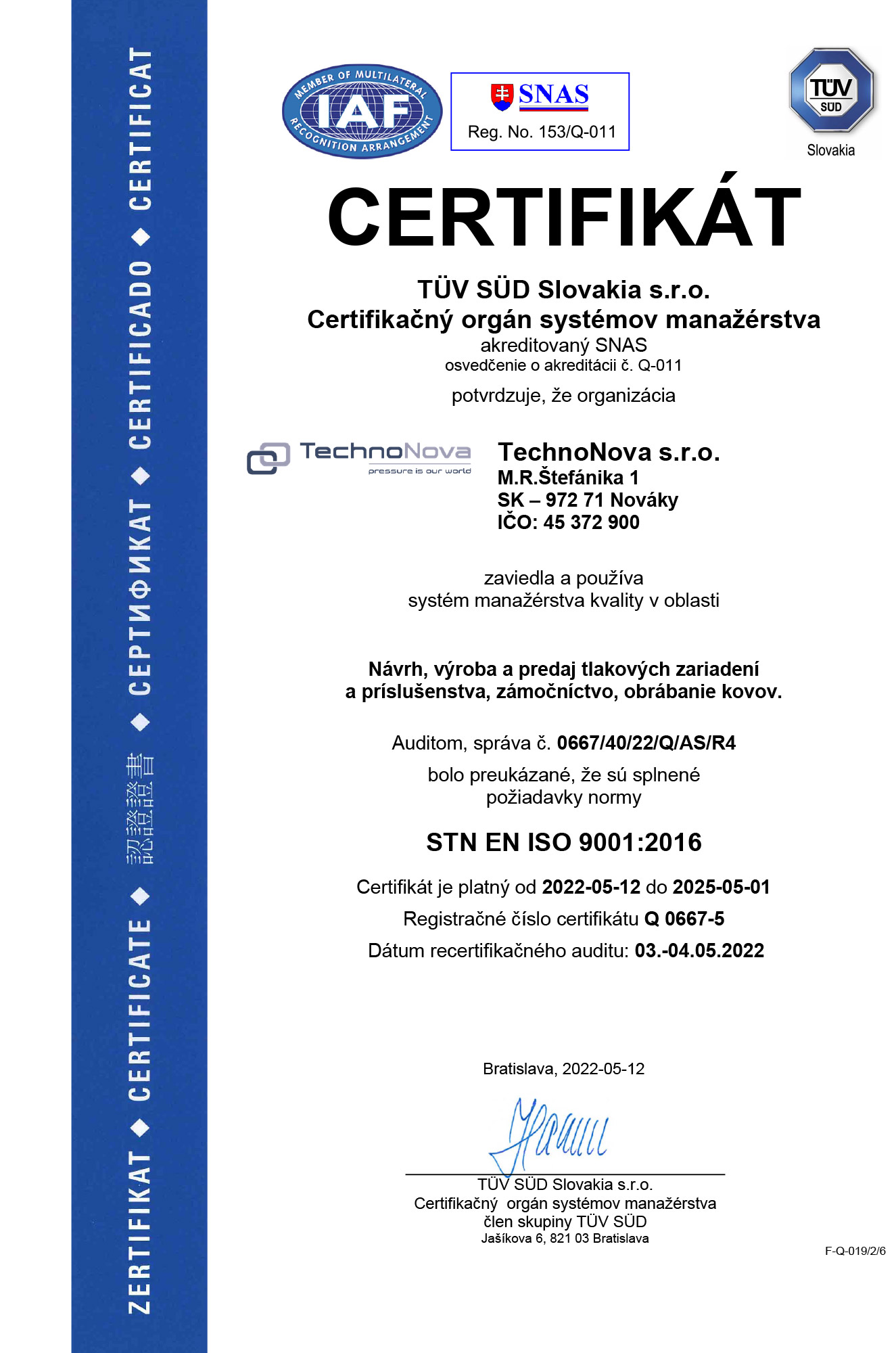 Kvalita je testovaná a certifikovaná pre splnenie požiadaviek spokojnosti zákazníka.