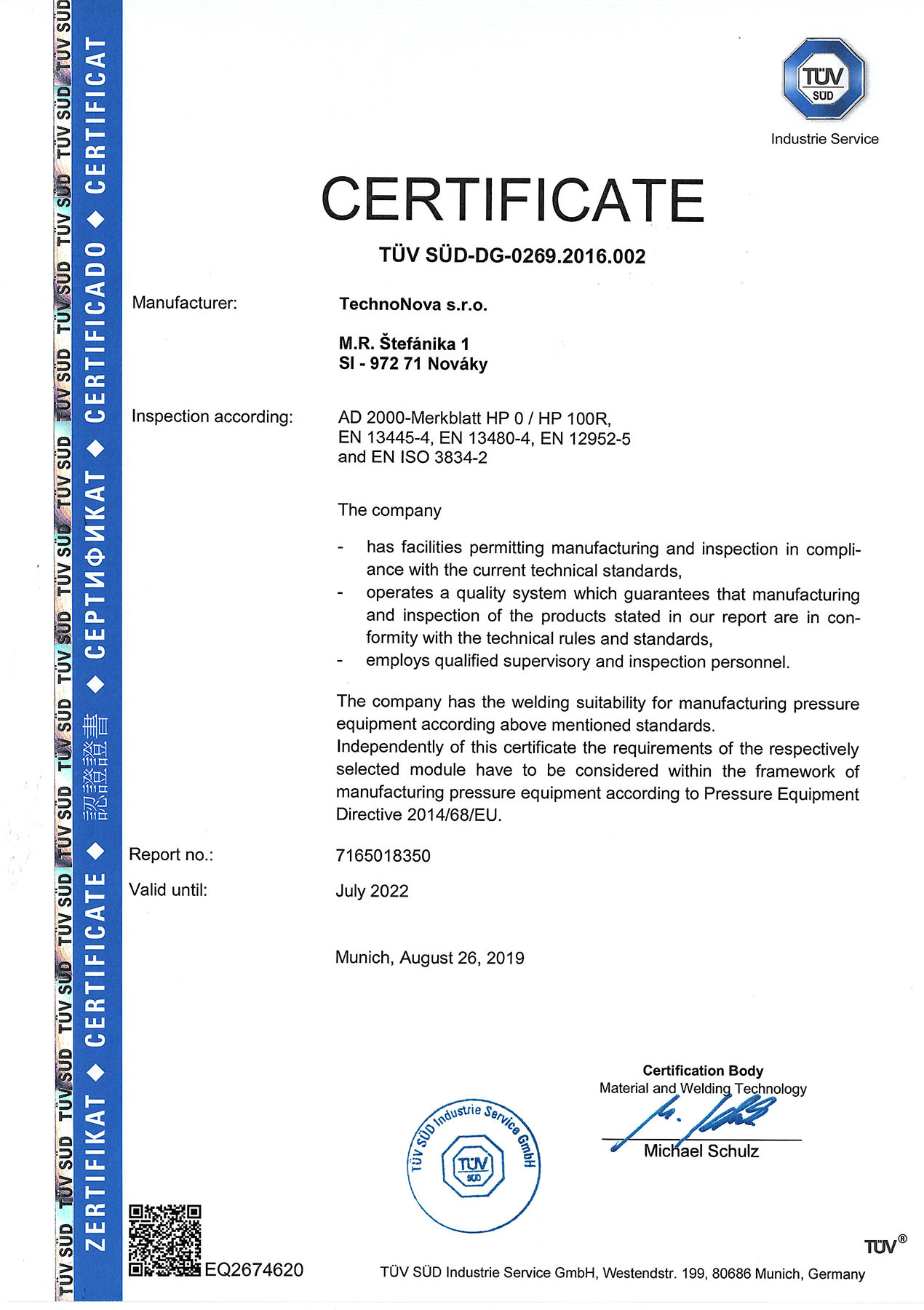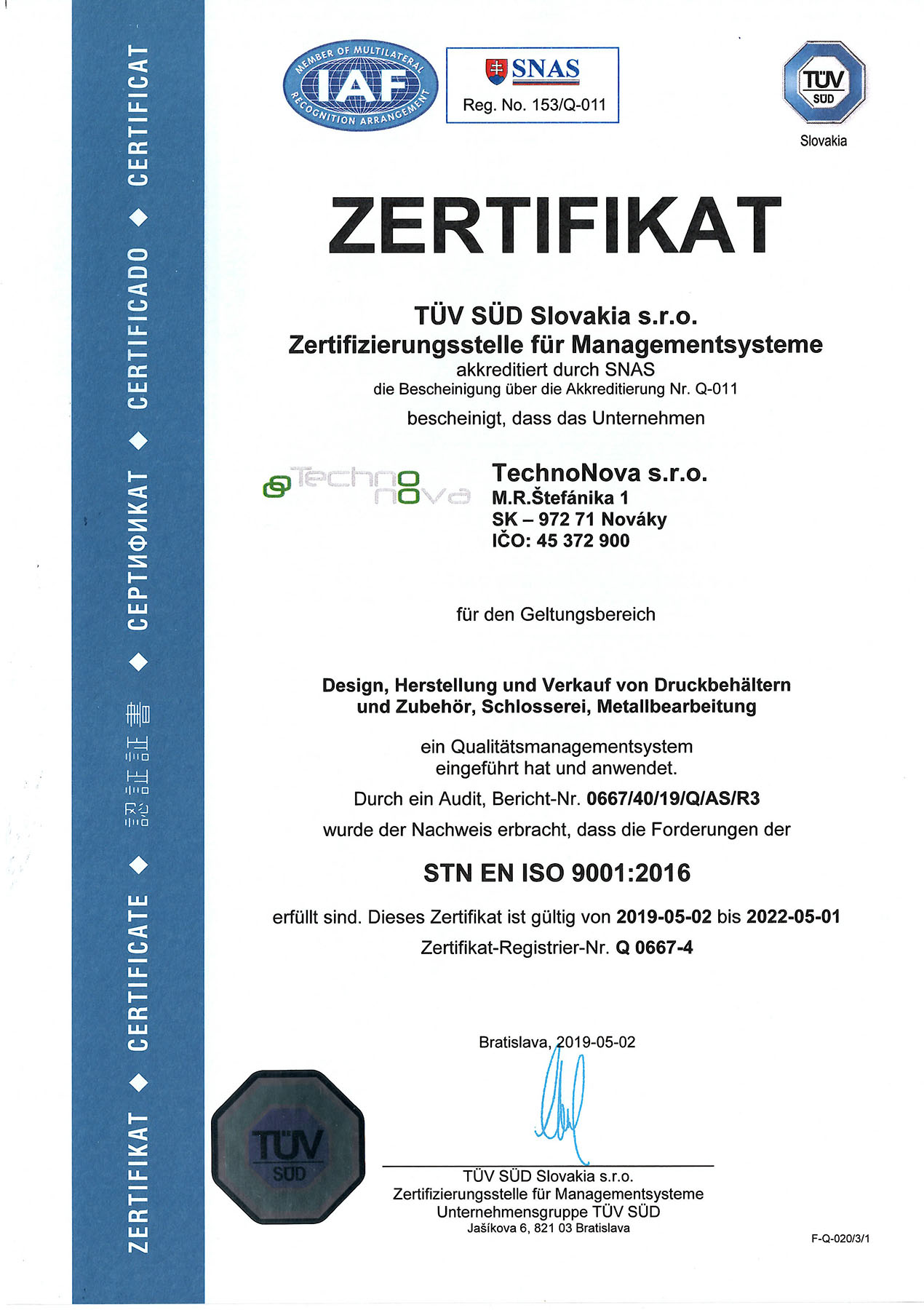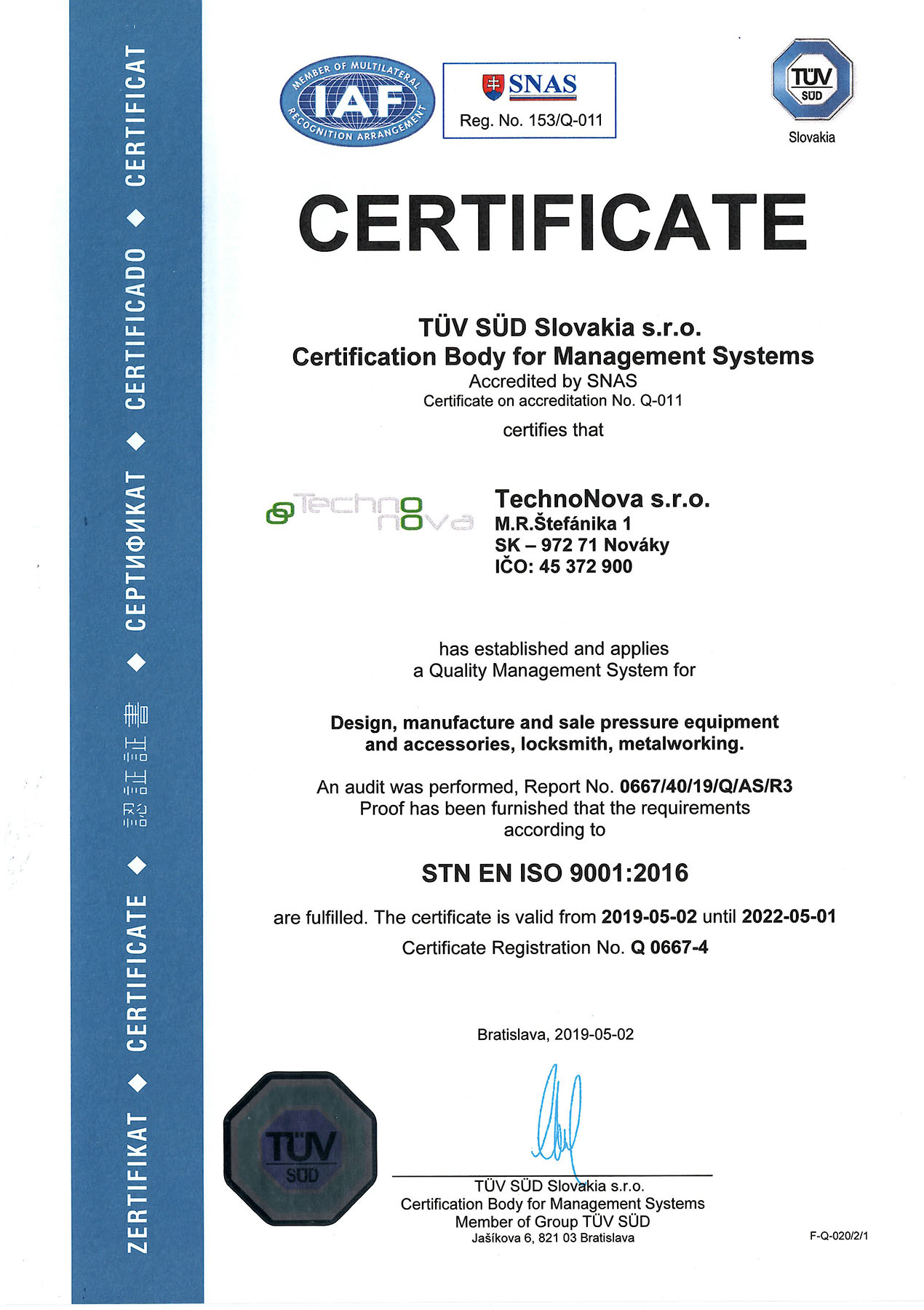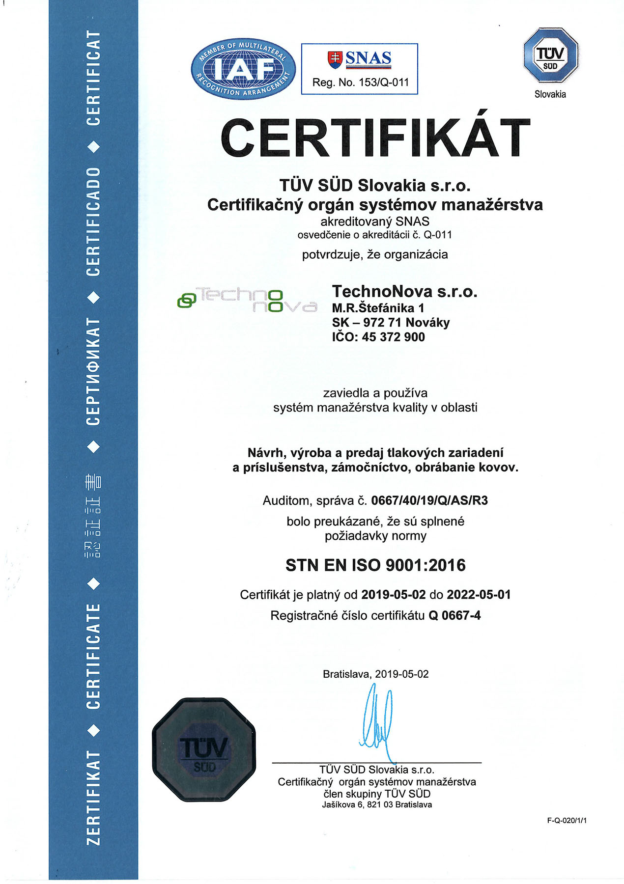 Spoločnosť TechnoNova je dlhoročným výrobcom rôznych zariadení a technologických celkov pre zákazníkov na celom svete, čo umožňujú jej odborníci, technologická vybavenosť a výrobné priestory, podporené skúsenosťami a odbornosťou zamestnancov.